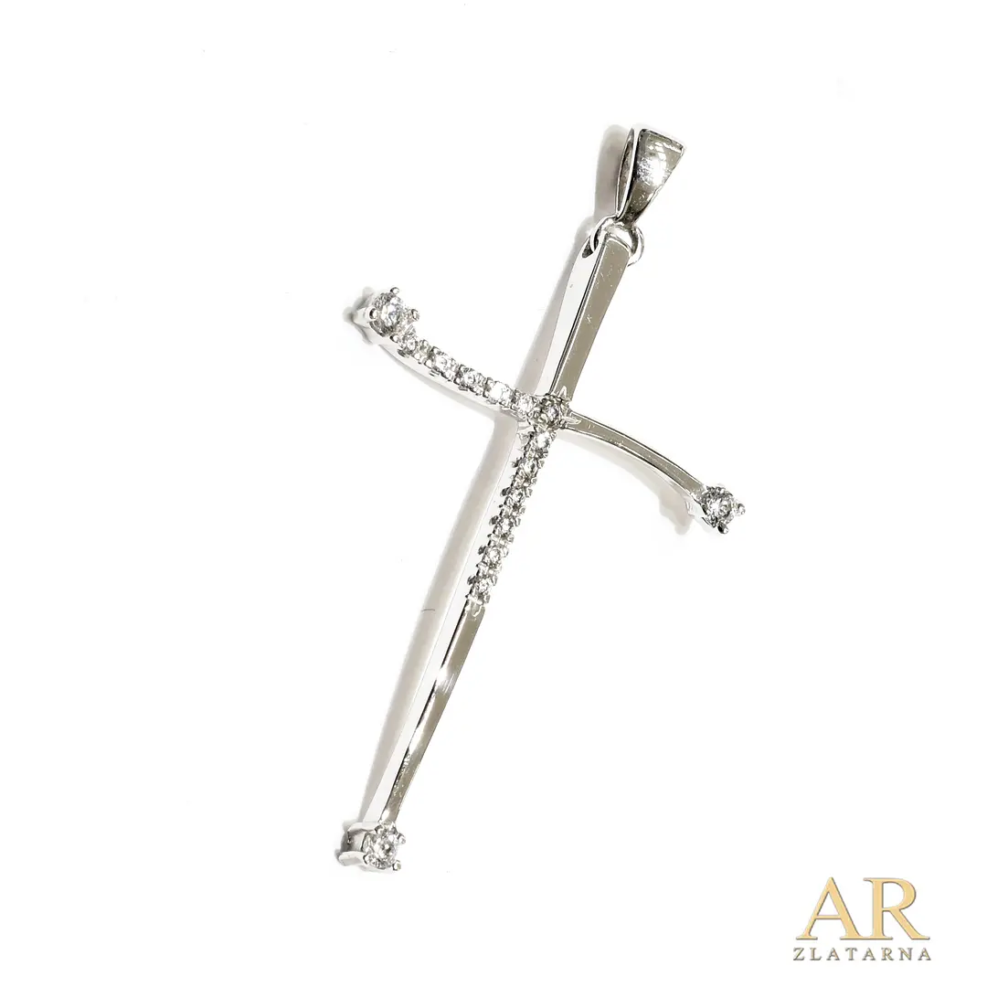 Bijelo zlato privjesak Križ sa cirkonima Model 2