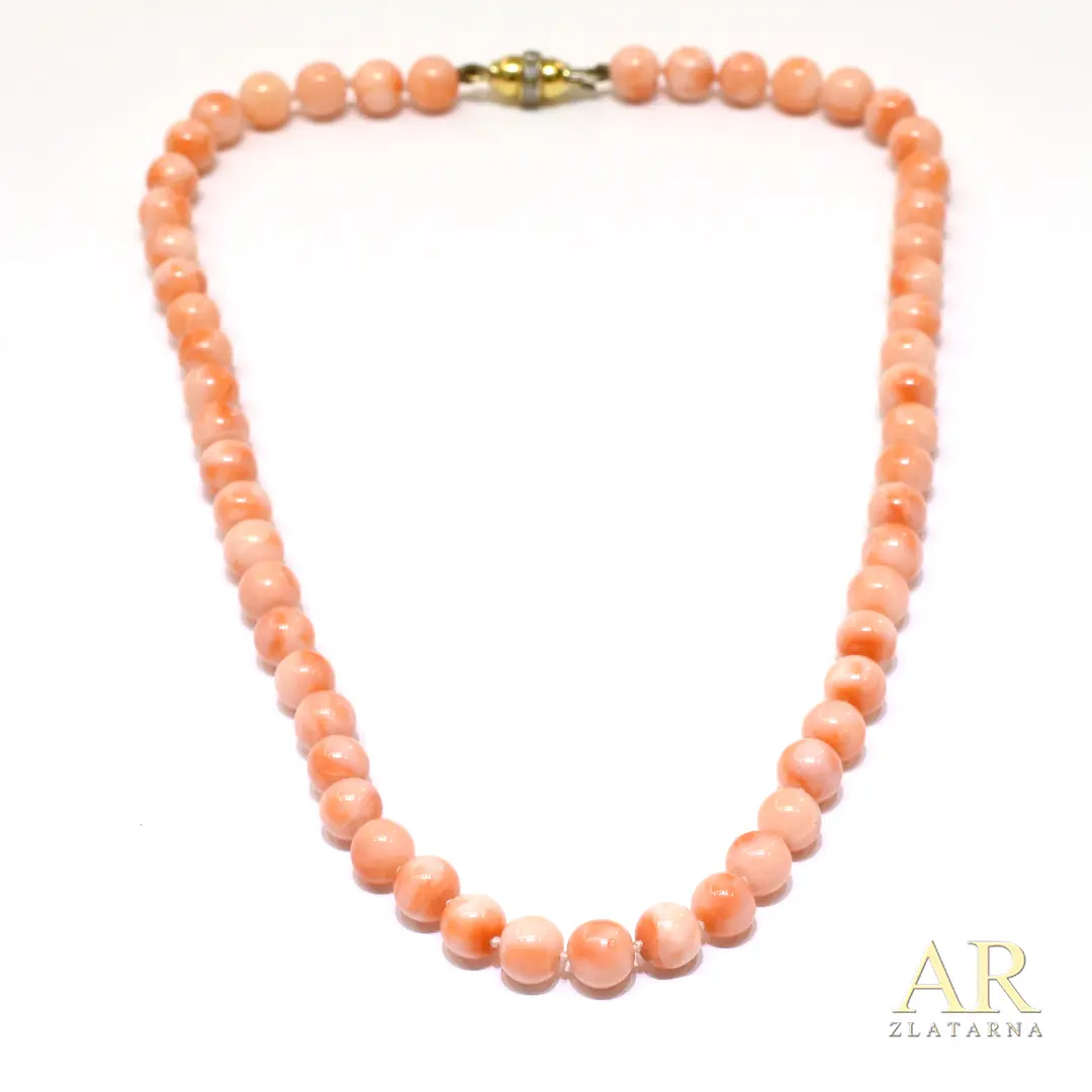 Rozi koralji ogrlica zlatna kopča 8 mm
