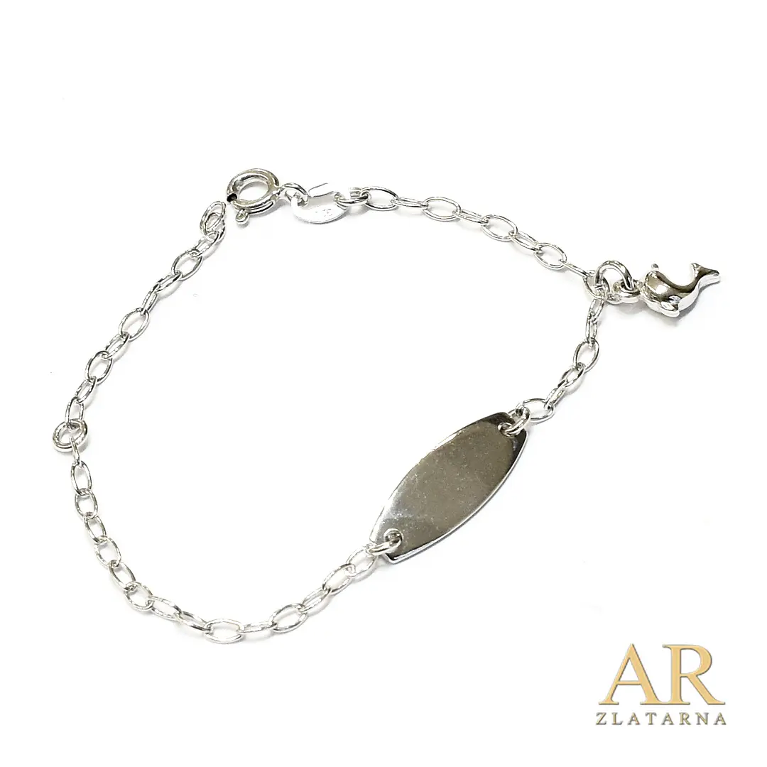 Srebrna dječja narukvica Dupin s pločicom 12cm