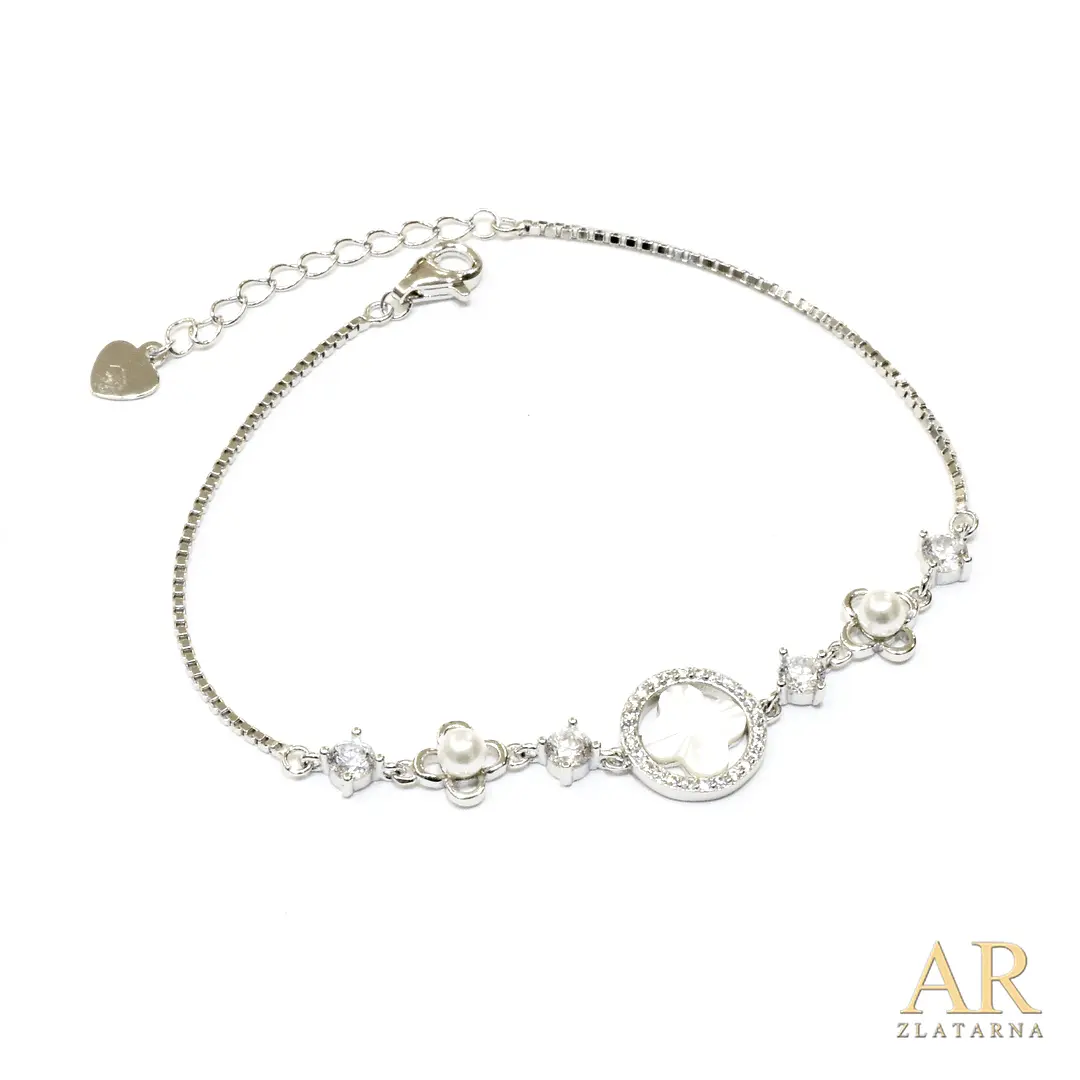 Srebrna narukvica djeteline sa cirkonima i madre perlom