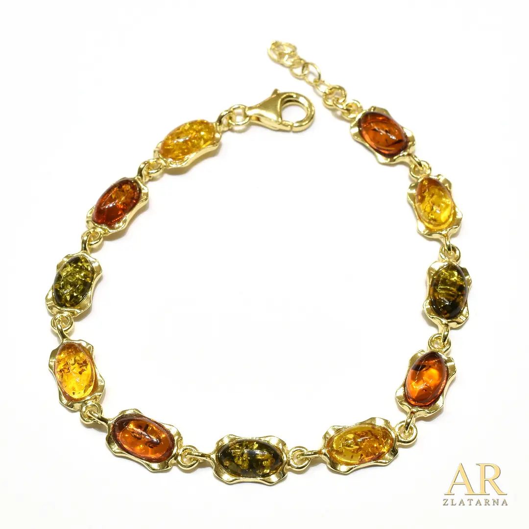 Srebrna narukvica pozlata Baltički jantar Model 14