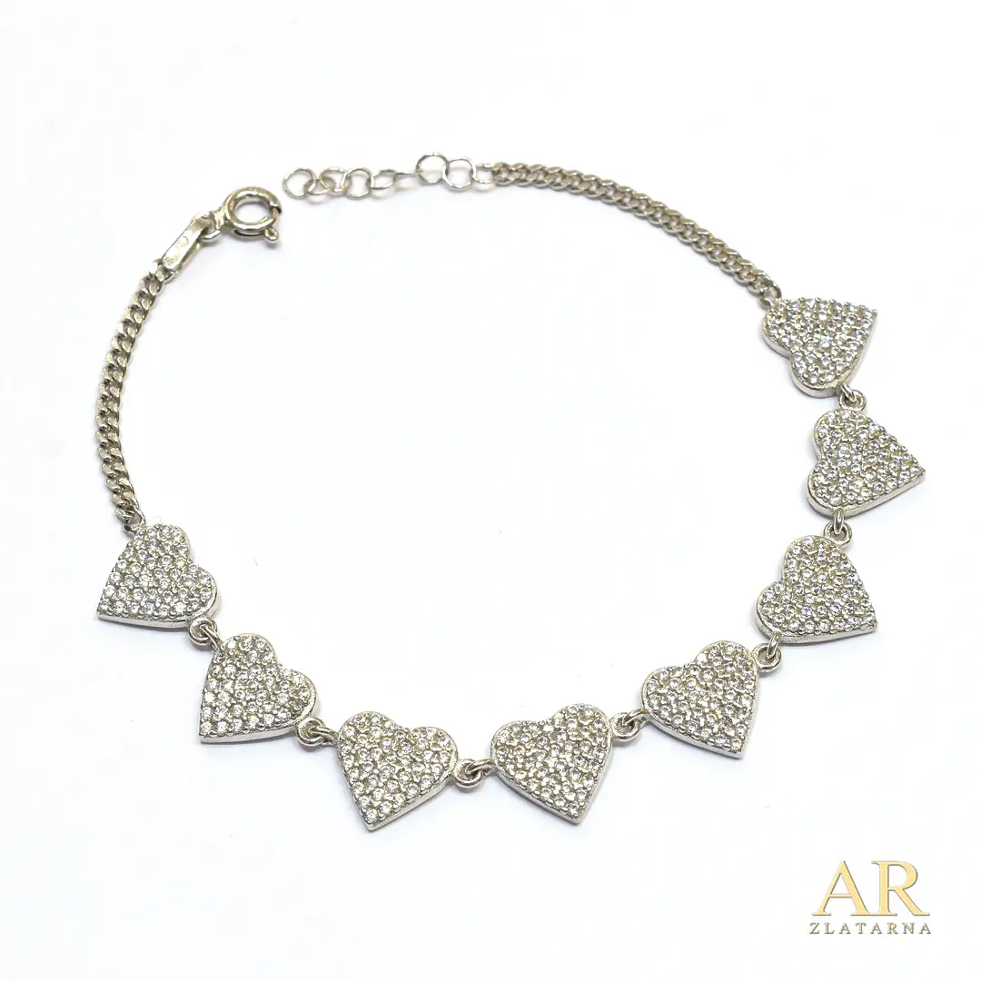 Srebrna narukvica Srca cirkoni u srcima 16cm