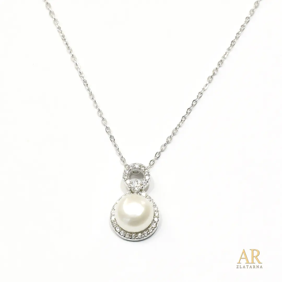 Srebrna ogrlica cirkoni i 8mm biser 38cm