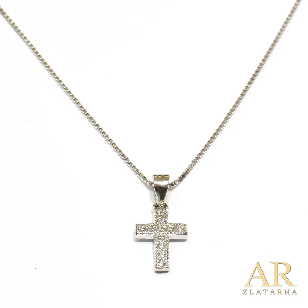 Srebrna ogrlica Križ cirkoni 45cm Model 2