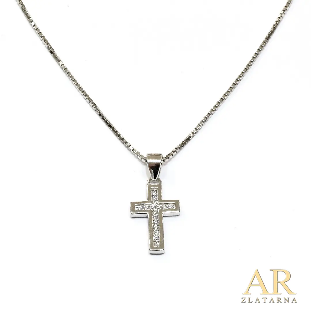 Srebrna ogrlica Križ zaglađeni cirkoni 45cm
