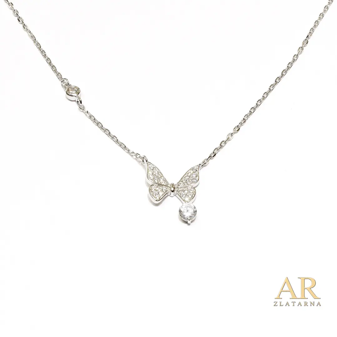 Srebrna ogrlica Leptir sa visećim cirkonom