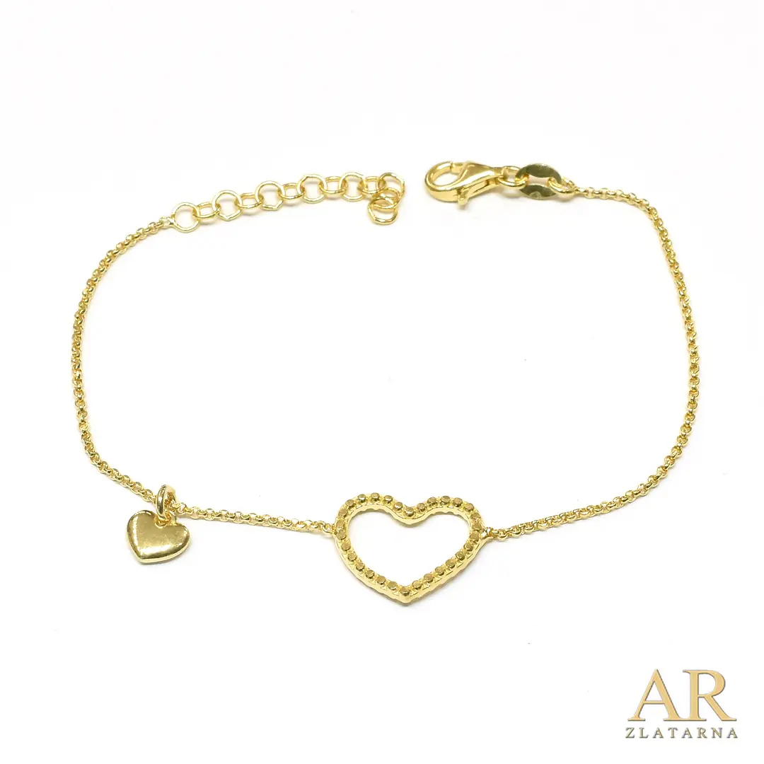 Srebrna pozlaćena narukvica Dva srca 17cm