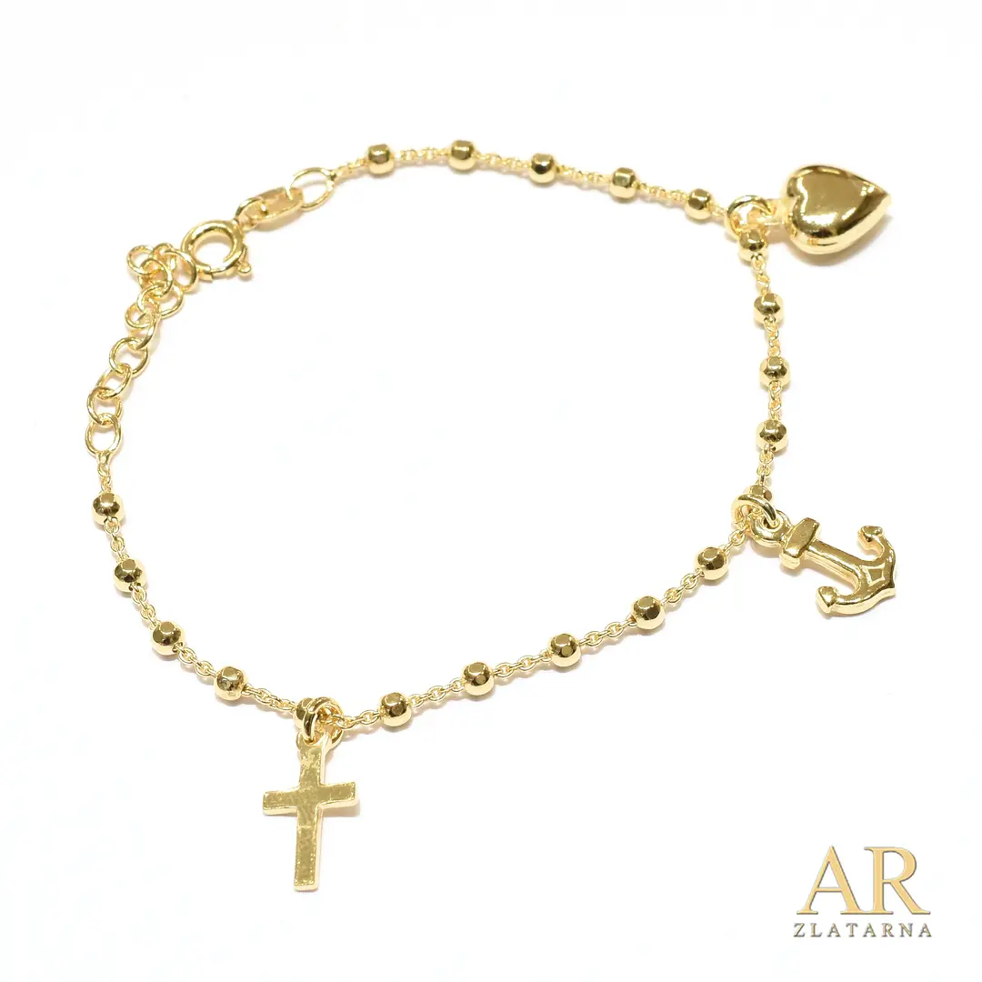 Srebrna pozlaćena narukvica Srce Sidro i Križ