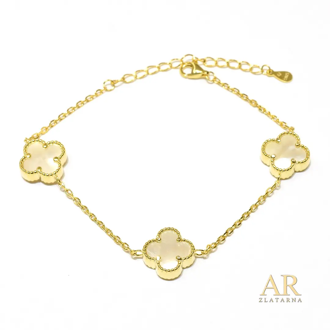 Srebrna pozlaćena narukvica Tri bijele djeteline Model 1