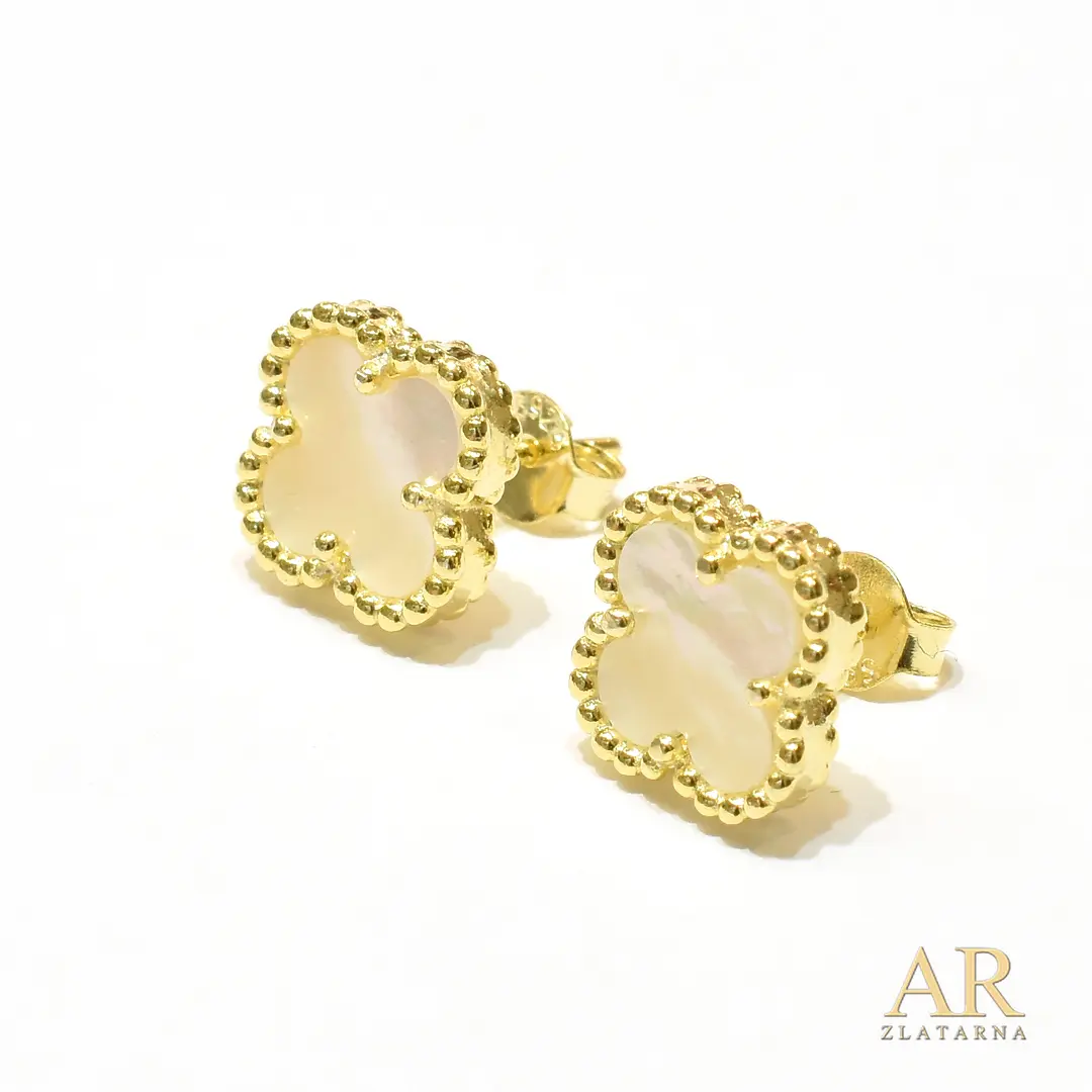 Srebrne naušnice pozlata bijela Djetelina maxi