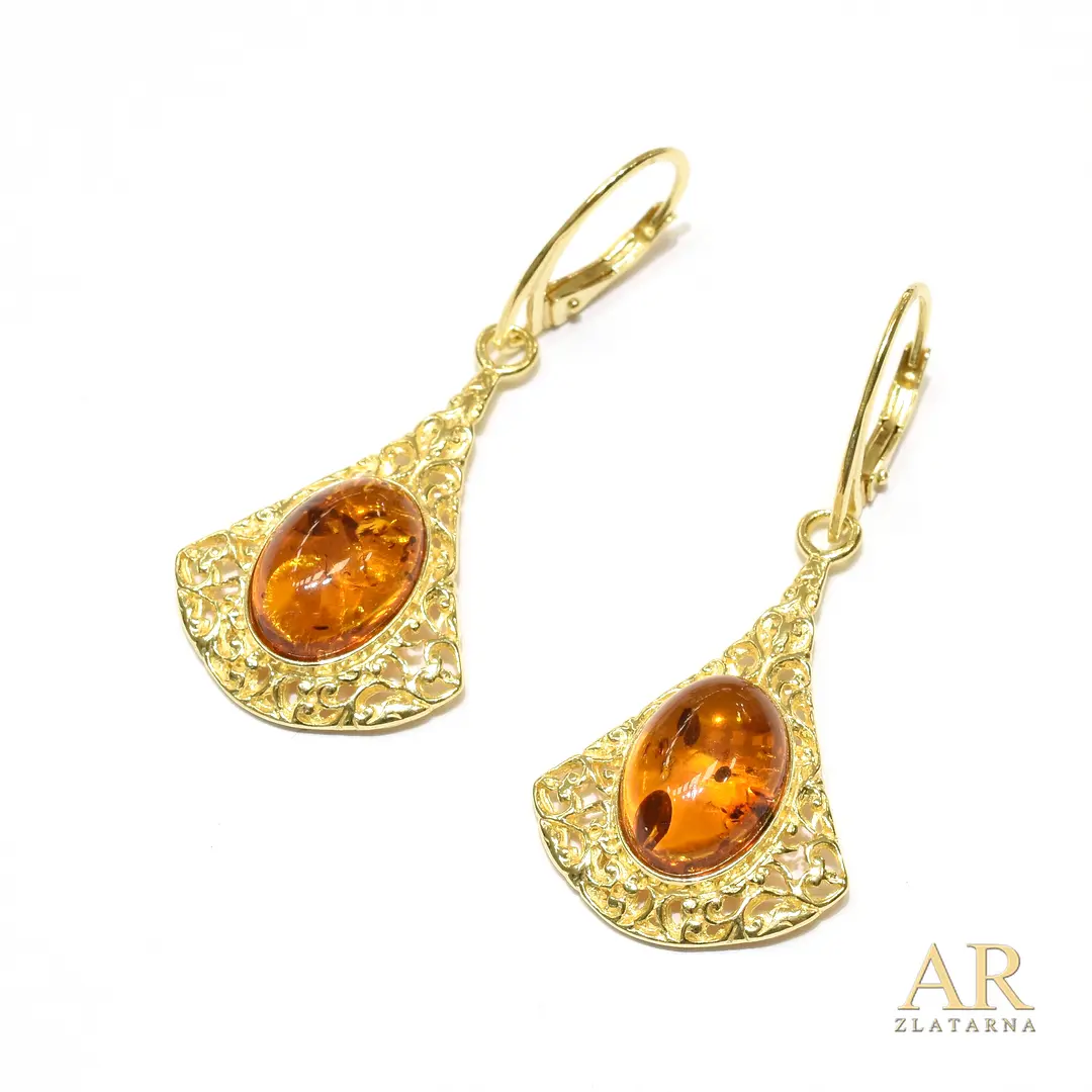 Srebrne naušnice pozlata Jantar Model 2