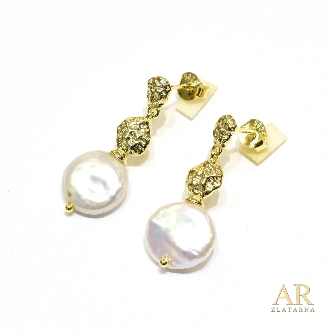 Srebrne pozlaćene viseće naušnice Biseri Model 2