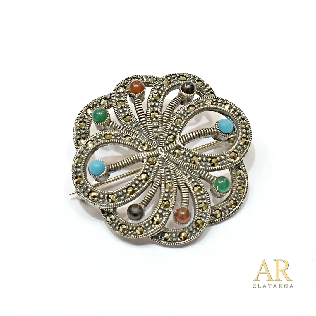 Srebrni broš markaziti i poludrago kamenje