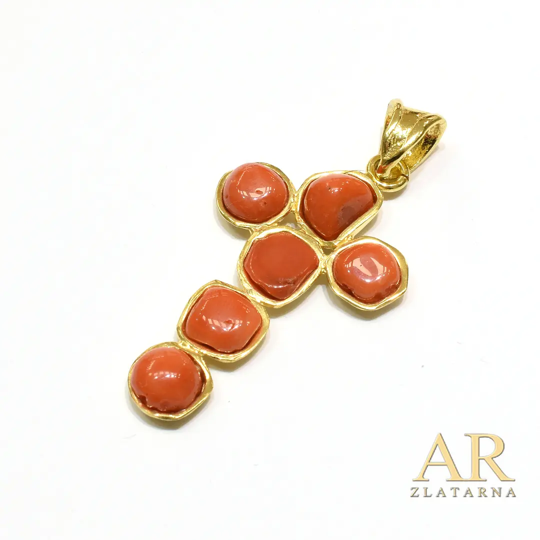 Srebrni pozlaćeni Križ s koraljima Model 1