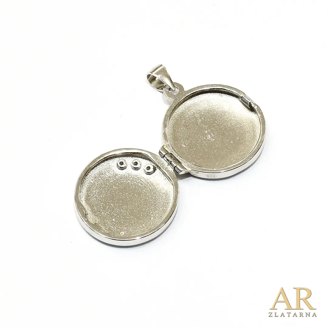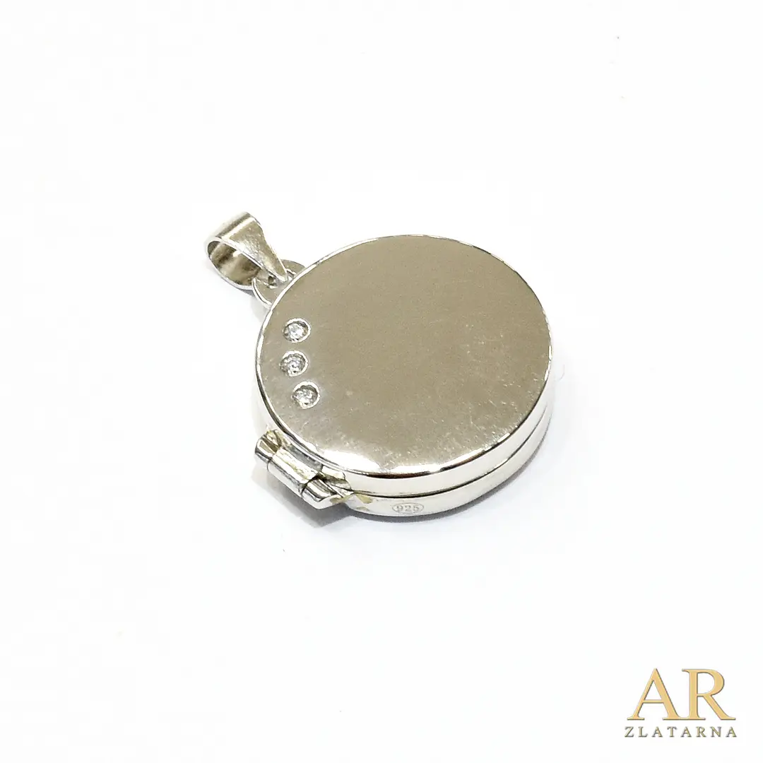 Srebrni privjesak Medaljon za sliku s tri cirkona 20mm
