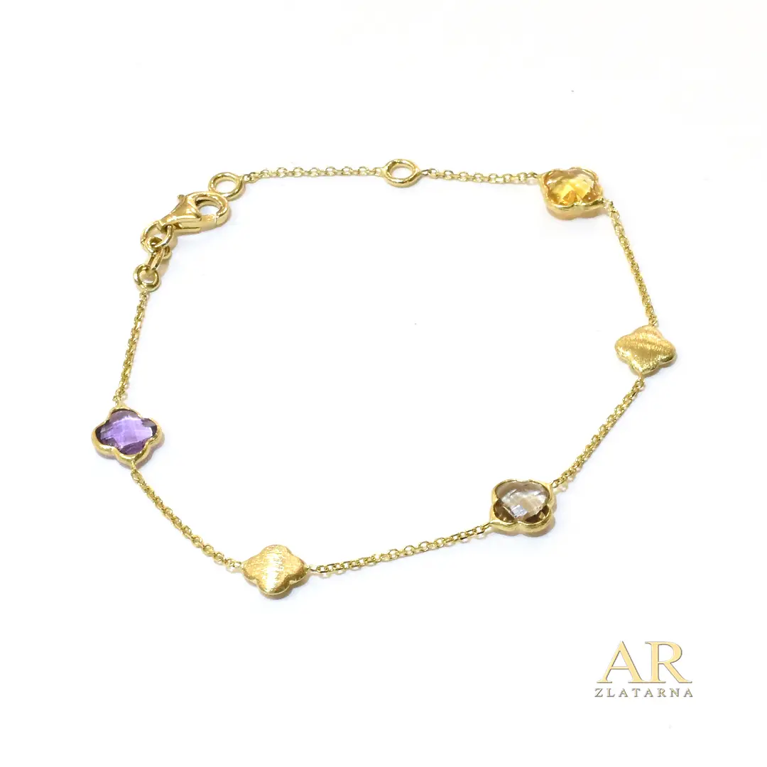 Zlatna narukvica Djeteline ametist quartz i topaz