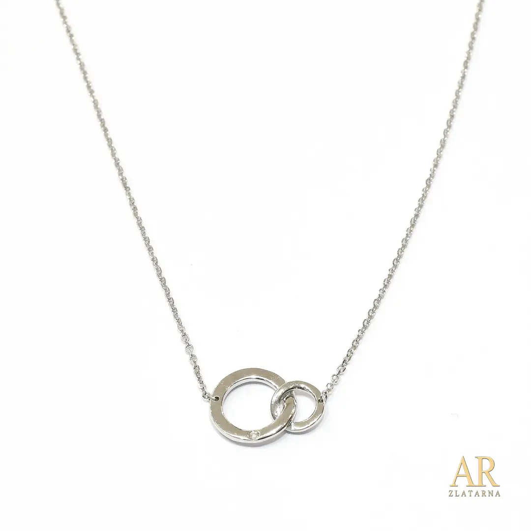 Zlatna ogrlica Dvije karike s 0.01ct dijamantom bijelo zlato