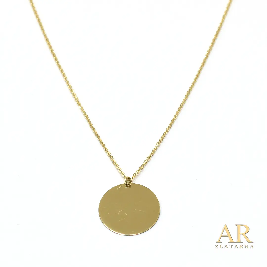 Zlatna ogrlica Okrugla pločica 15mm privjesak 42cm