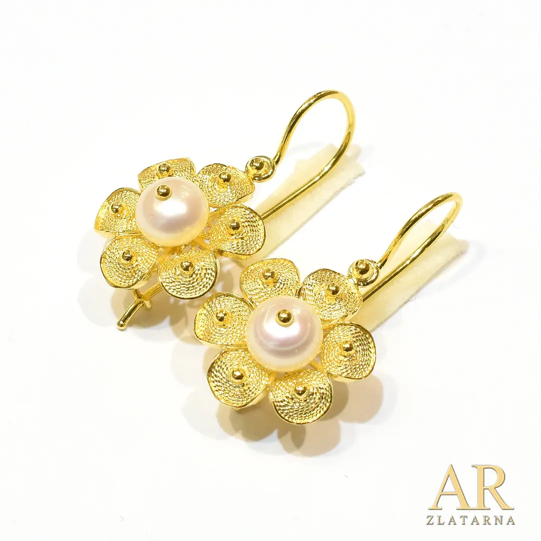 Zlatne filigranske naušnice Cvijet s biserom model 1