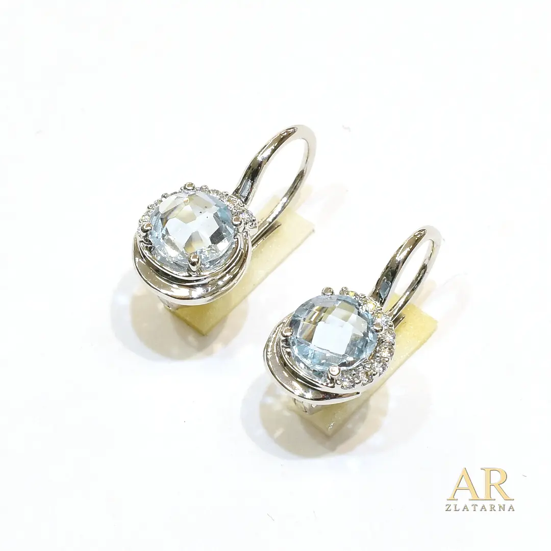Zlatne naušnice bijelo zlato topaz i cirkoni Model 2