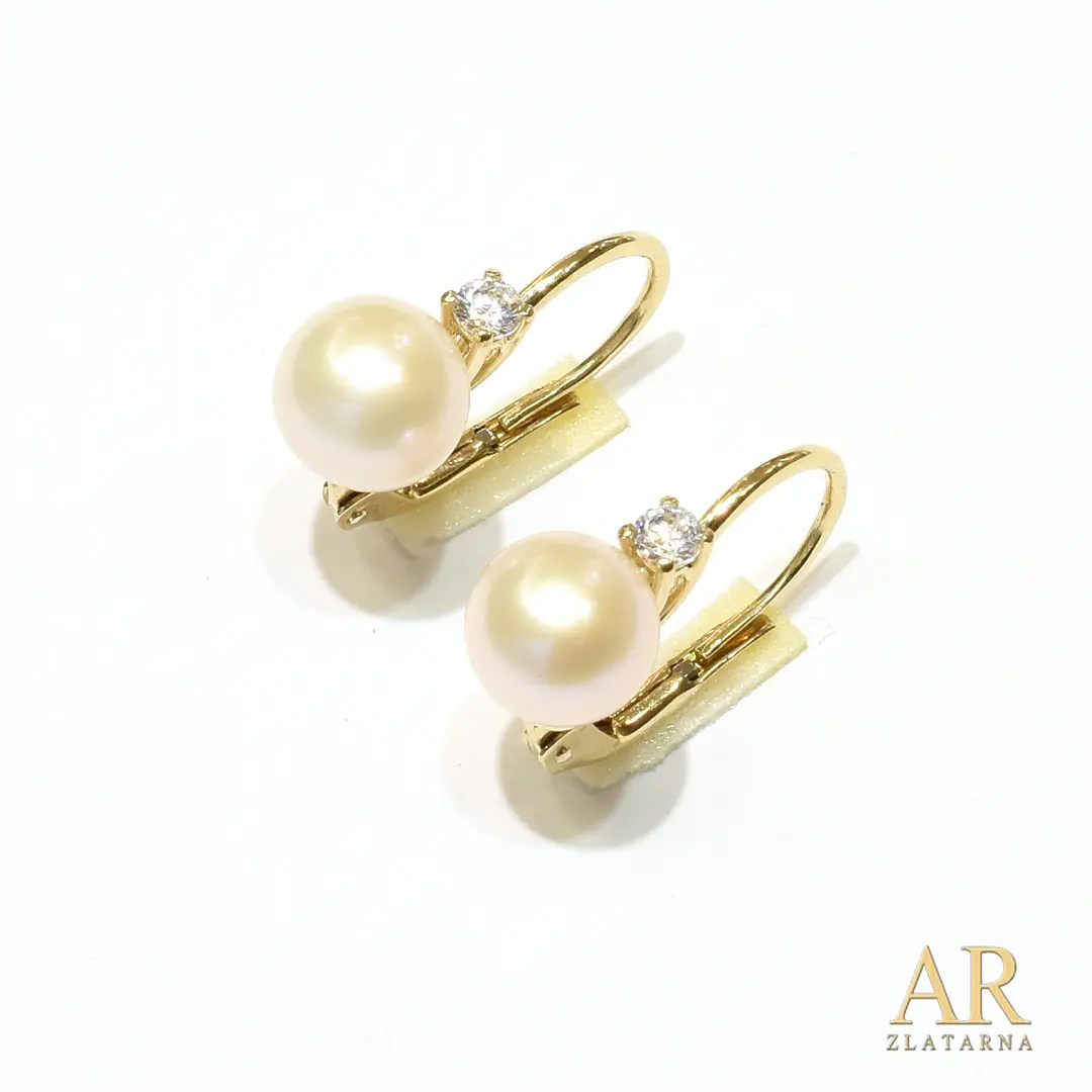 Zlatne naušnice Biser 7.5 mm i cirkon