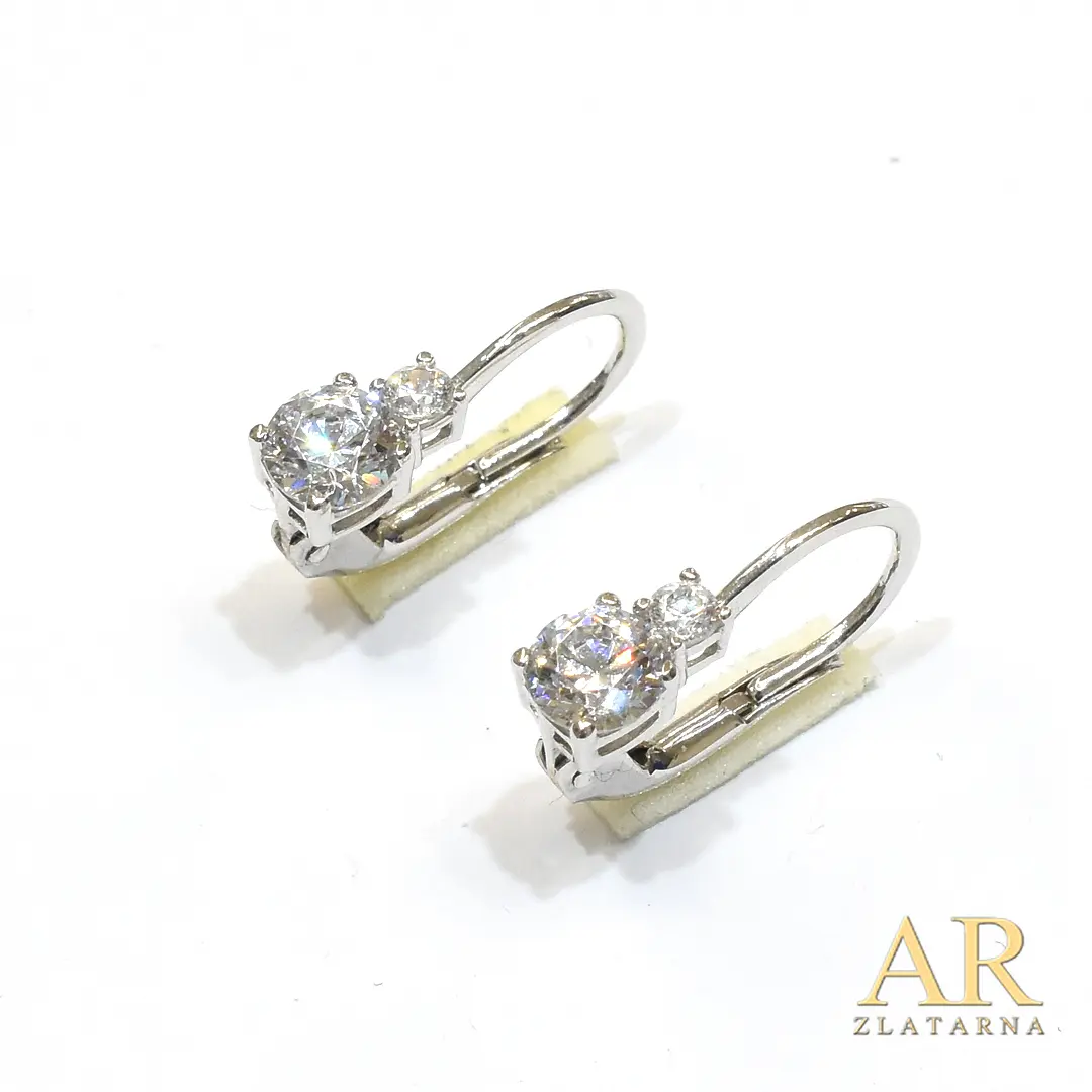 Zlatne naušnice cirkoni u dvije četverokrake krune bijelo zlato