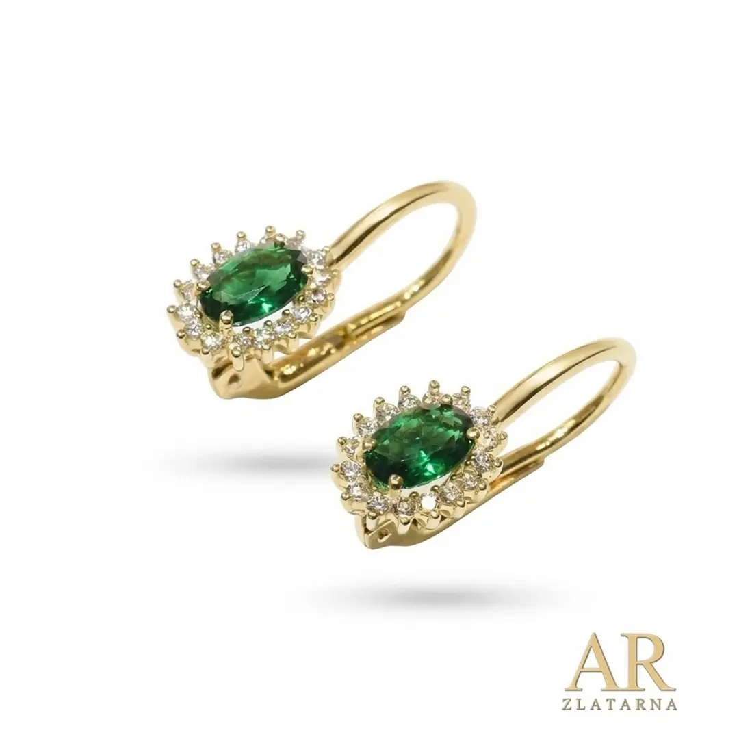 Zlatne naušnice krupni zeleni kamen u kruni s cirkonima