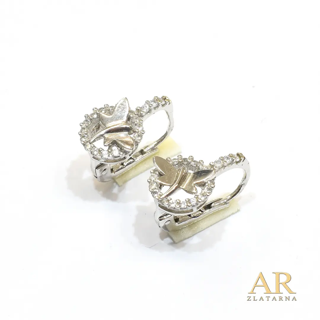 Zlatne naušnice Leptir cirkoni po obodu i na kruni bijelo zlato