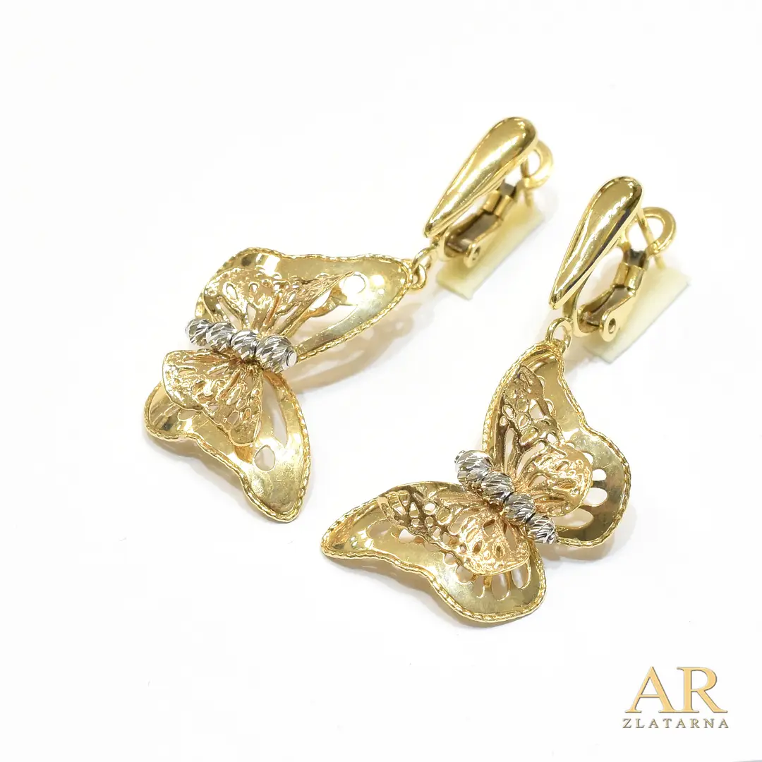 Zlatne naušnice Leptiri bijelo i žuto zlato