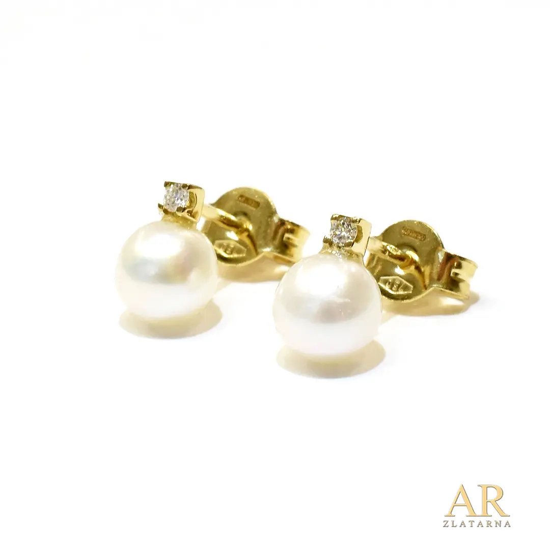 Zlatne naušnice s 0.04ct dijamantima i 6.0mm biserima