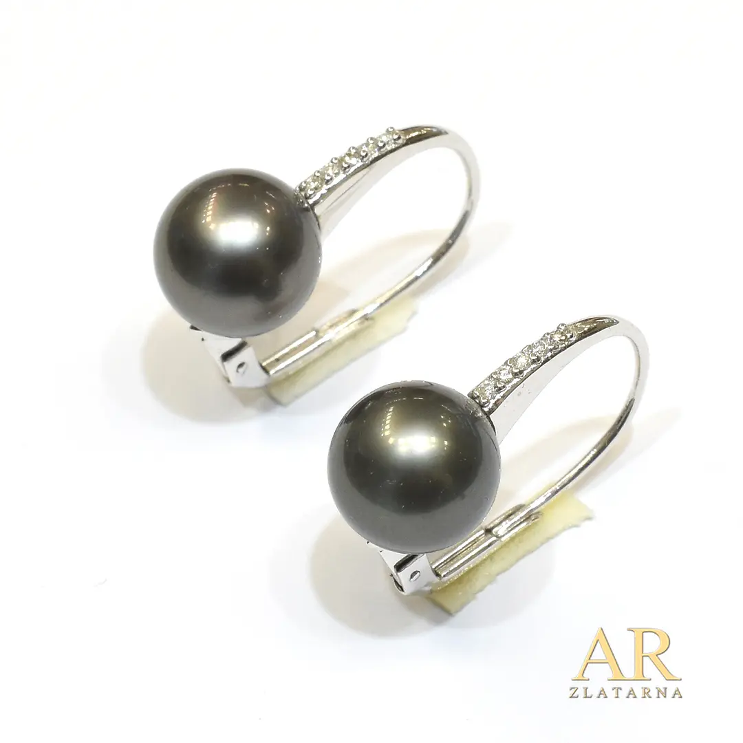 Zlatne naušnice s 0.088ct dijamantima i 11mm biserima Tahiti bijelo zlato