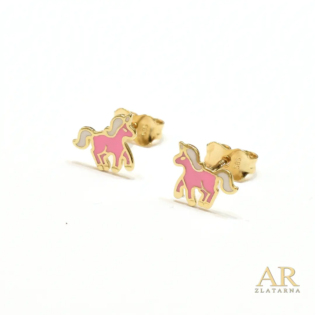 Zlatne naušnice Unikorn sa emajlom