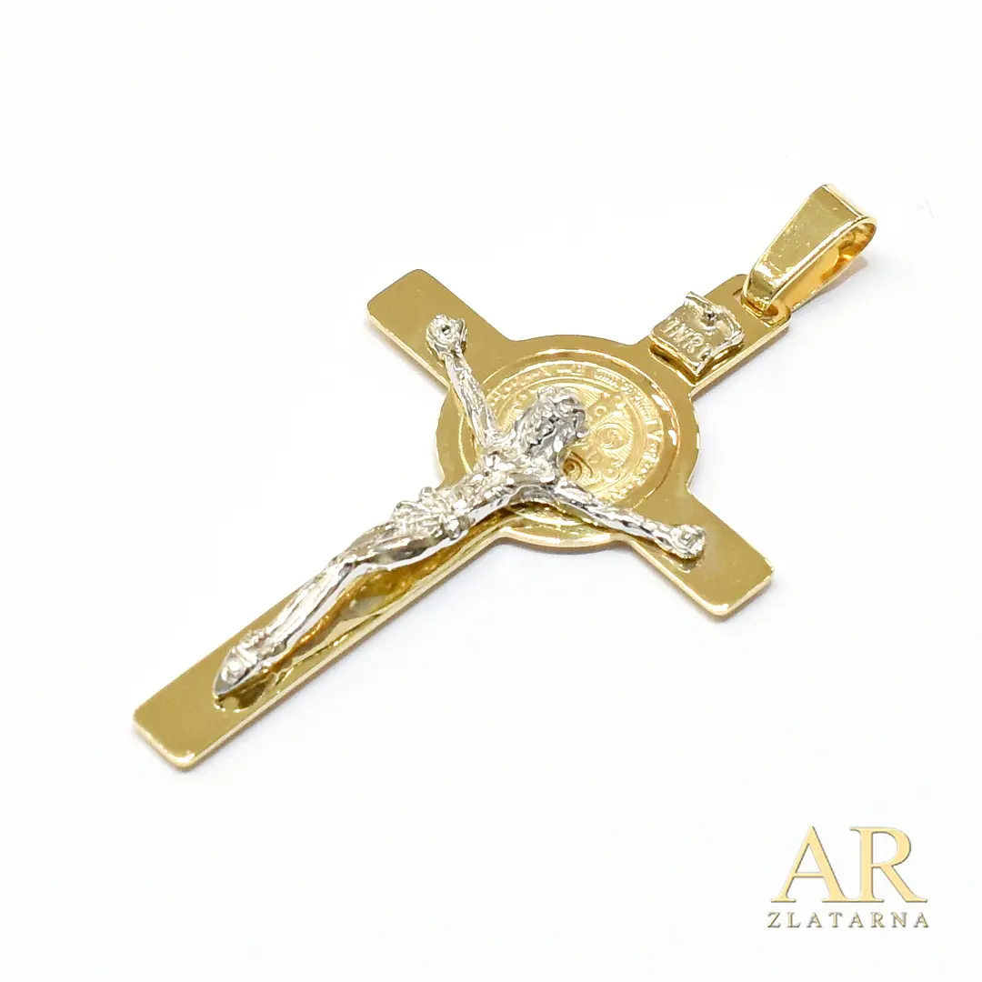 Zlatni privjesak Križ Sveti Benedikt bijelo i žuto zlato 58mm