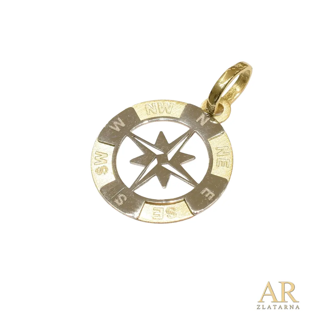 Zlatni privjesak Ruža vjetrova osmerosmjerna 16mm