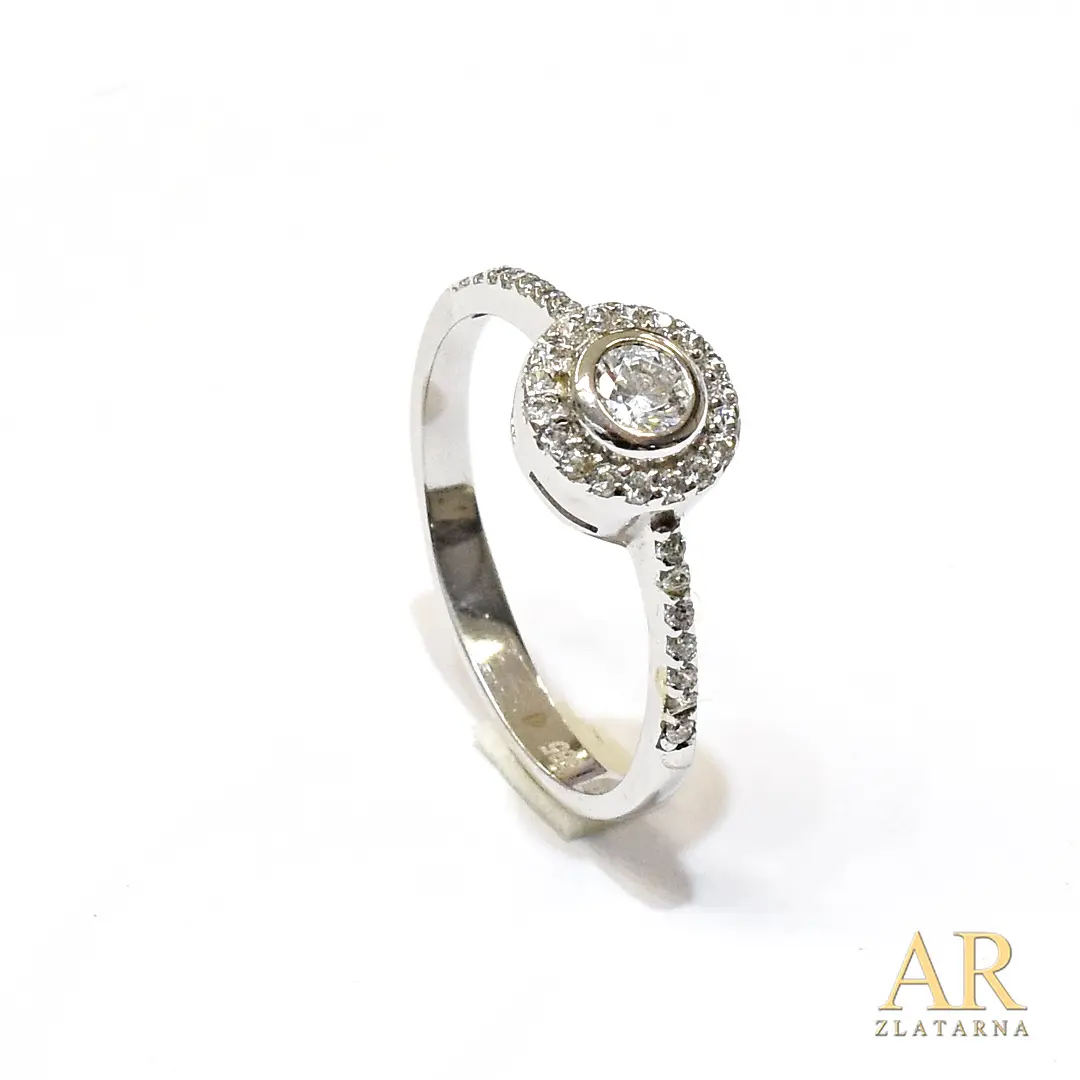Zlatni zaručnički prsten bijelo zlato sa cirkonima po obodu i u okrugloj kruni Model 2