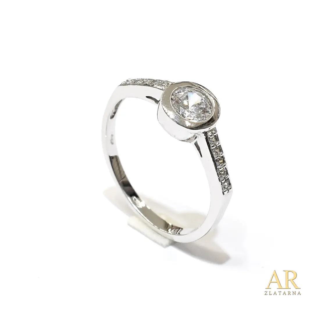 Zlatni zaručnički prsten bijelo zlato sa cirkonima po obodu i u okrugloj kruni Model 3