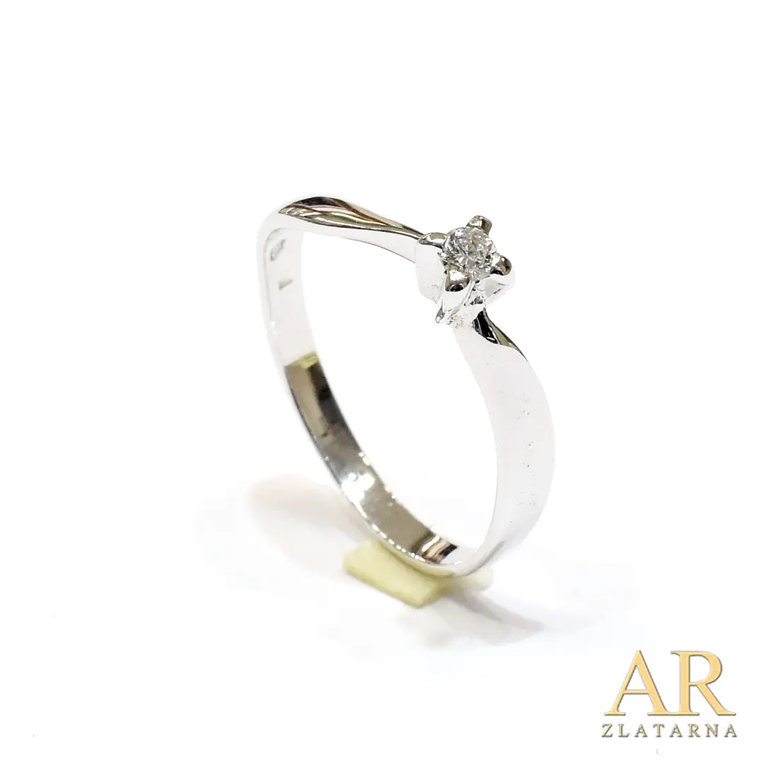 Zlatni zaručnički prsten bijelo zlato uvijeni s 0.08ct dijamantom u četverokrakoj kruni