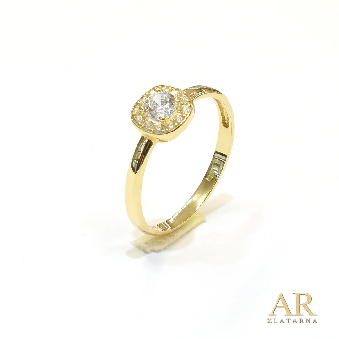 Zlatni zaručnički prsten sa cirkonima na zaobljenoj kvadratnoj kruni Model 1